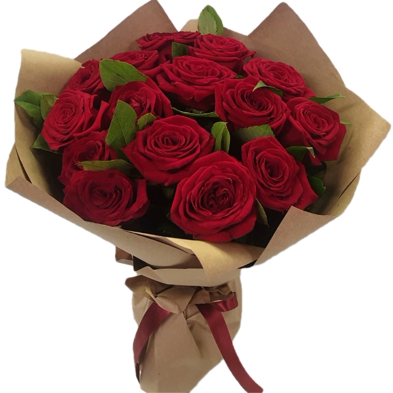 Букет из 17 бордовых роз в крафте